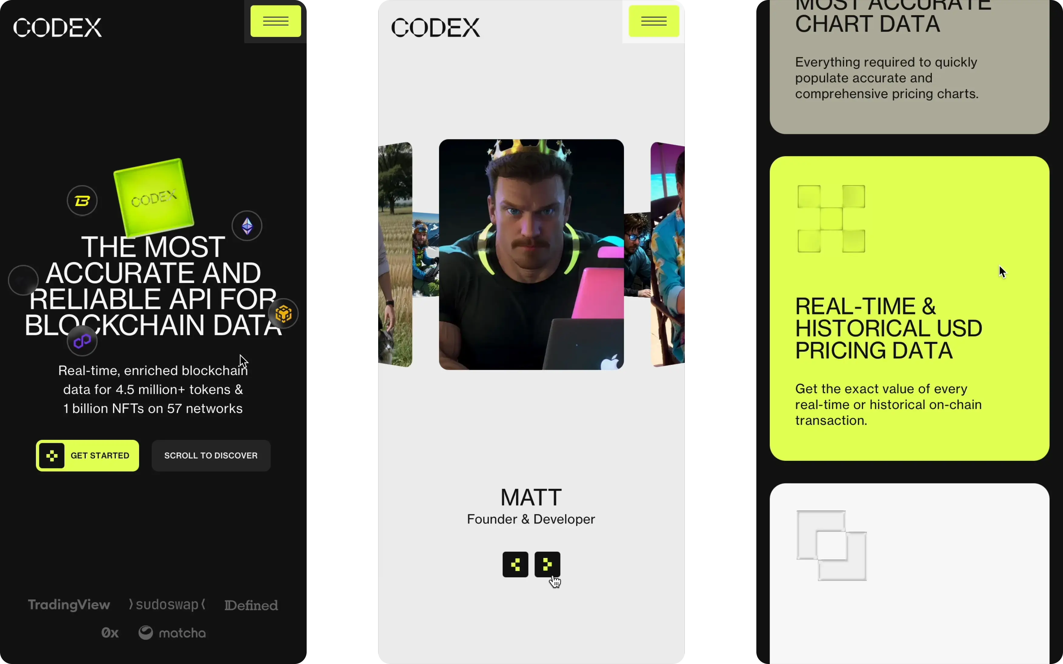 I collaborated with Codex, a leading blockchain data API provider, to redesign and develop their website in Webflow. I designed intuitive interfaces, created 3D elements in Spline, and established a cohesive visual language and animation system.