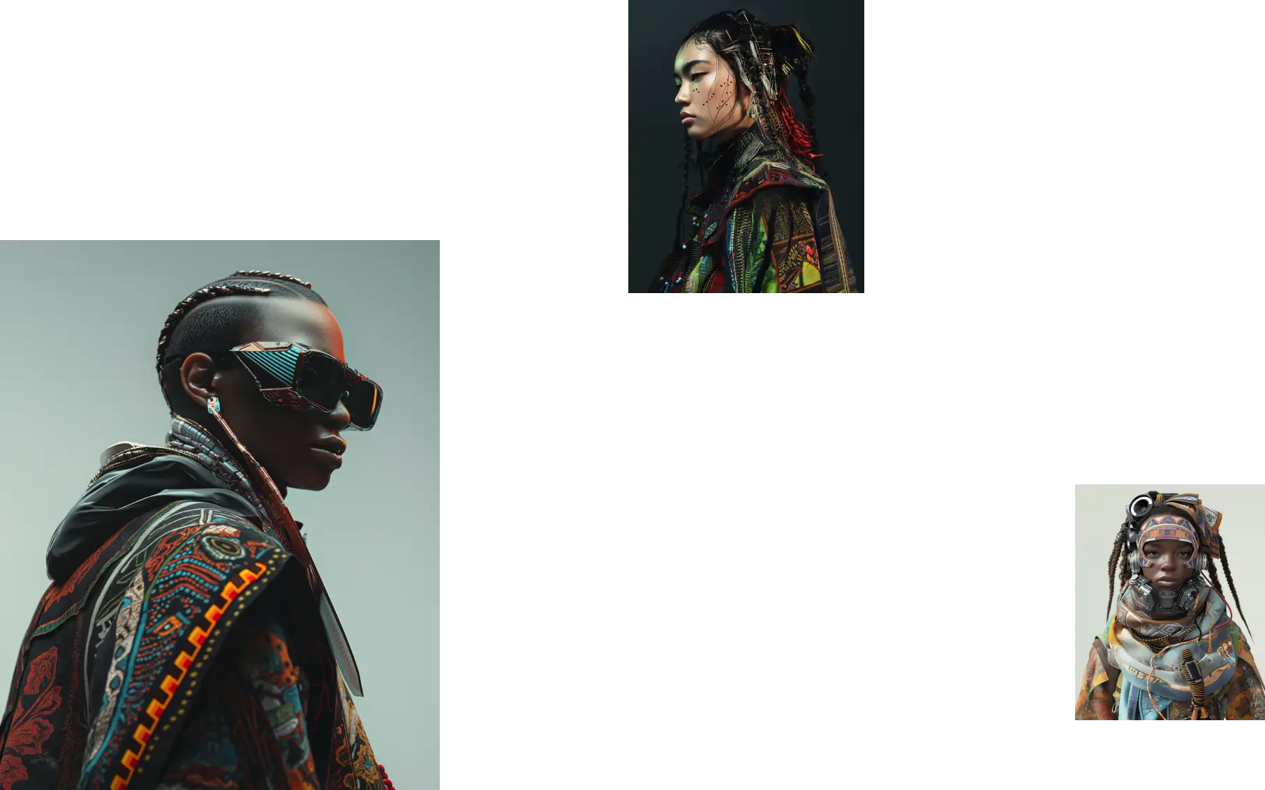 NeoCultural Couture is a showcase of futuristic AI-generated fashion, inspired by diverse cultures.